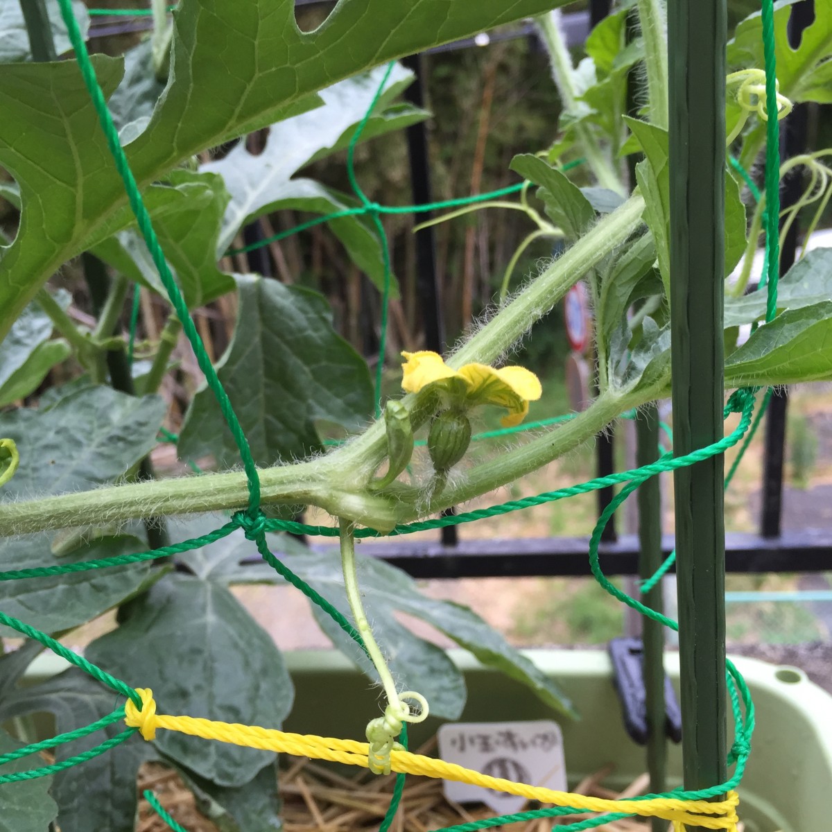 プランターで栽培中の「小玉すいか」「ミニメロン」「ゴーヤ」。それぞれ、摘心してから1週間程度経過しました。