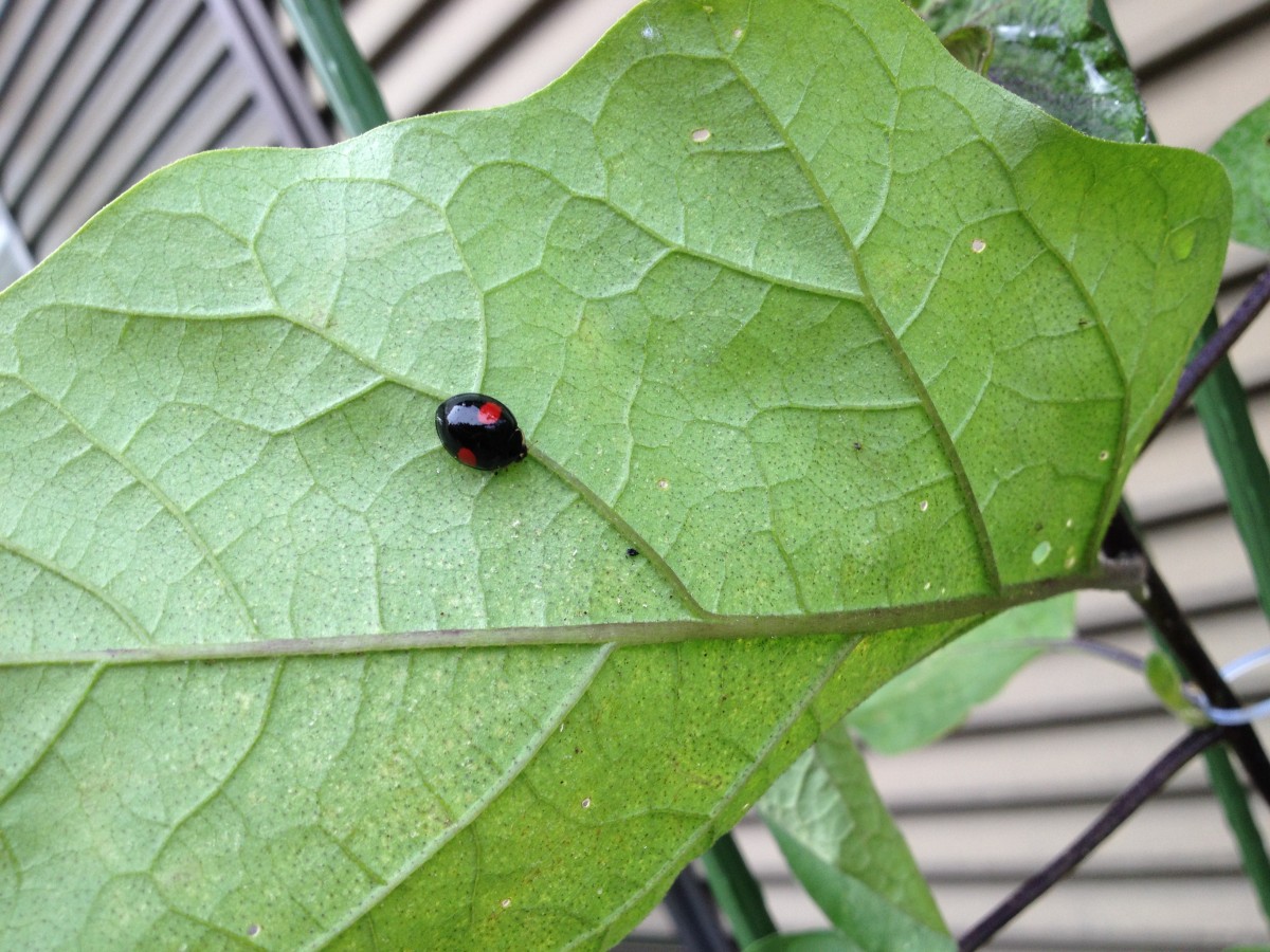 そんなタイミングでてんとう虫の登場。ツヤツヤしてる方。もちろん本物の方。待ってました!