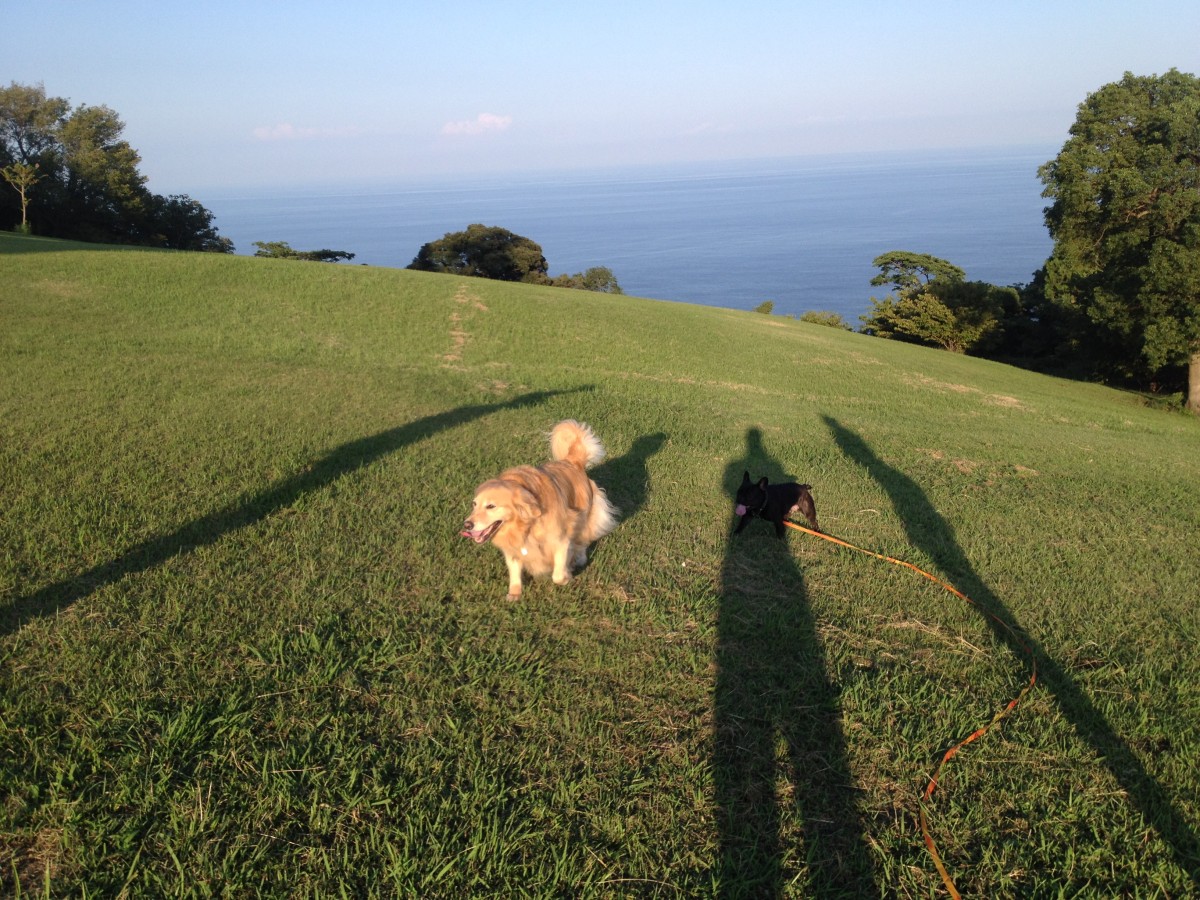 すっかり秋です。たいぶ涼しくなってきたので、少し早めに小室山。早速いつもの広場へ。バタバタ走りながら遊んでいるとゴールデンやってきました。