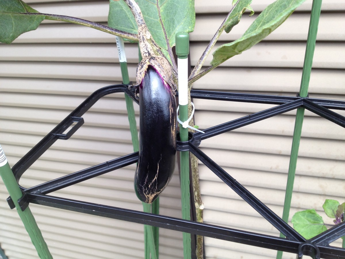 13日目のナス。全長13cm超。一日1cmずつ順調に成長中。ほぼコピペ。