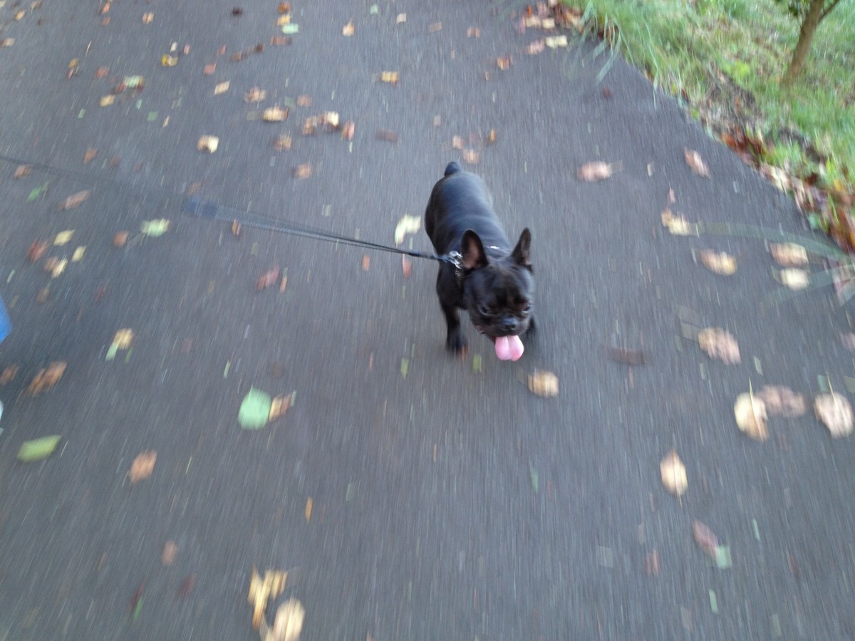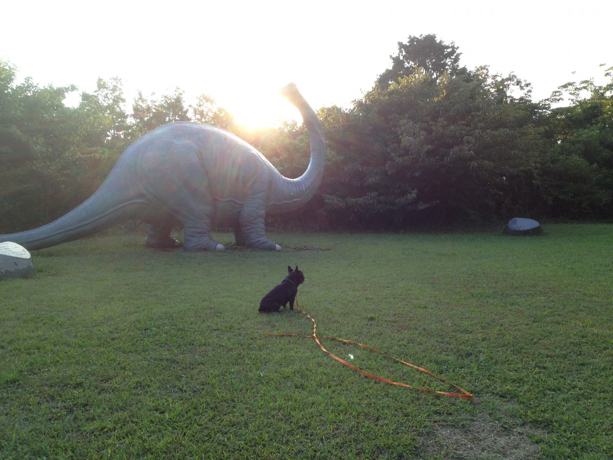 恐竜広場で訓練にはげむフレンチブルドッグのぶんた。