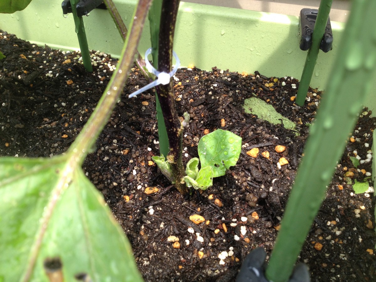 地面に近い部分の脇芽が育ってきた。よし、早速脇芽欠き。