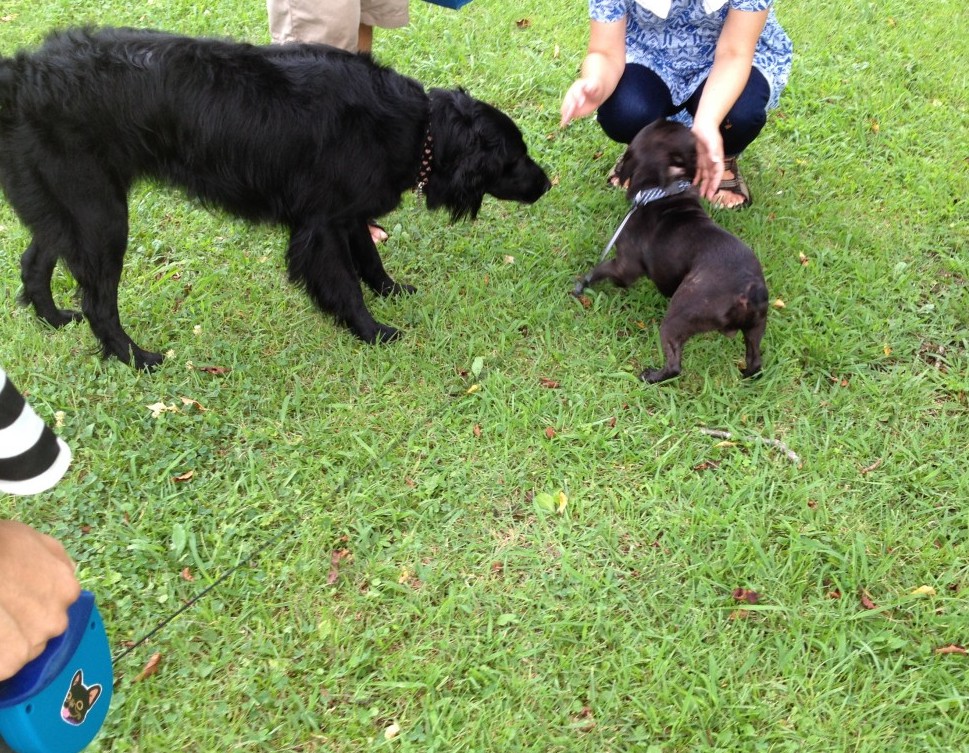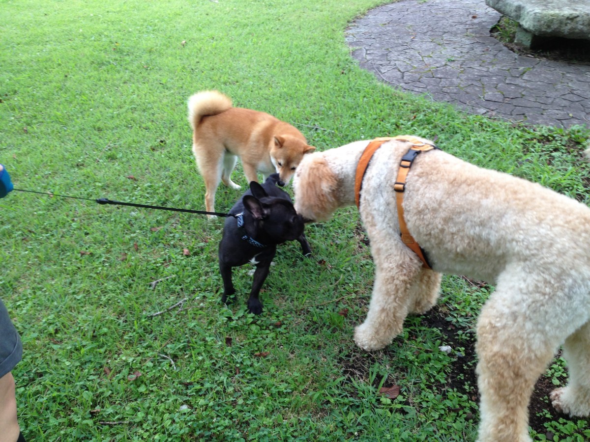 せっかくなので散歩もかねて、ぶんた氏の交流レベル上げ。密かに大きくて威厳のありそうな犬に犬同士のマナー的なものを教われたらなーと期待しつつ、普通に歩いているだけでも色々な犬が挨拶しにきてくれました。