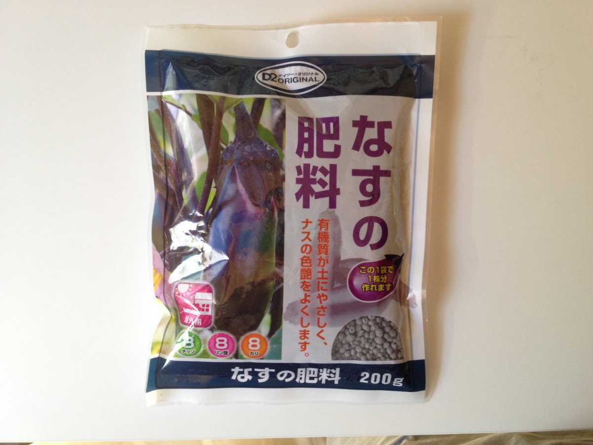 D2で買ってきたのはこれ。100円ちょっと。ナスの肥料って書いてあるのでw