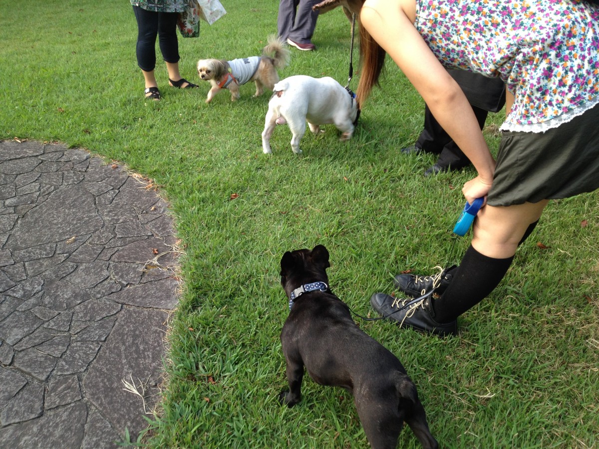 飼い主はわーわーもりあがっている中、おろおろときょどるぶんた。大人のフレンチの貫禄は中々なものでした。