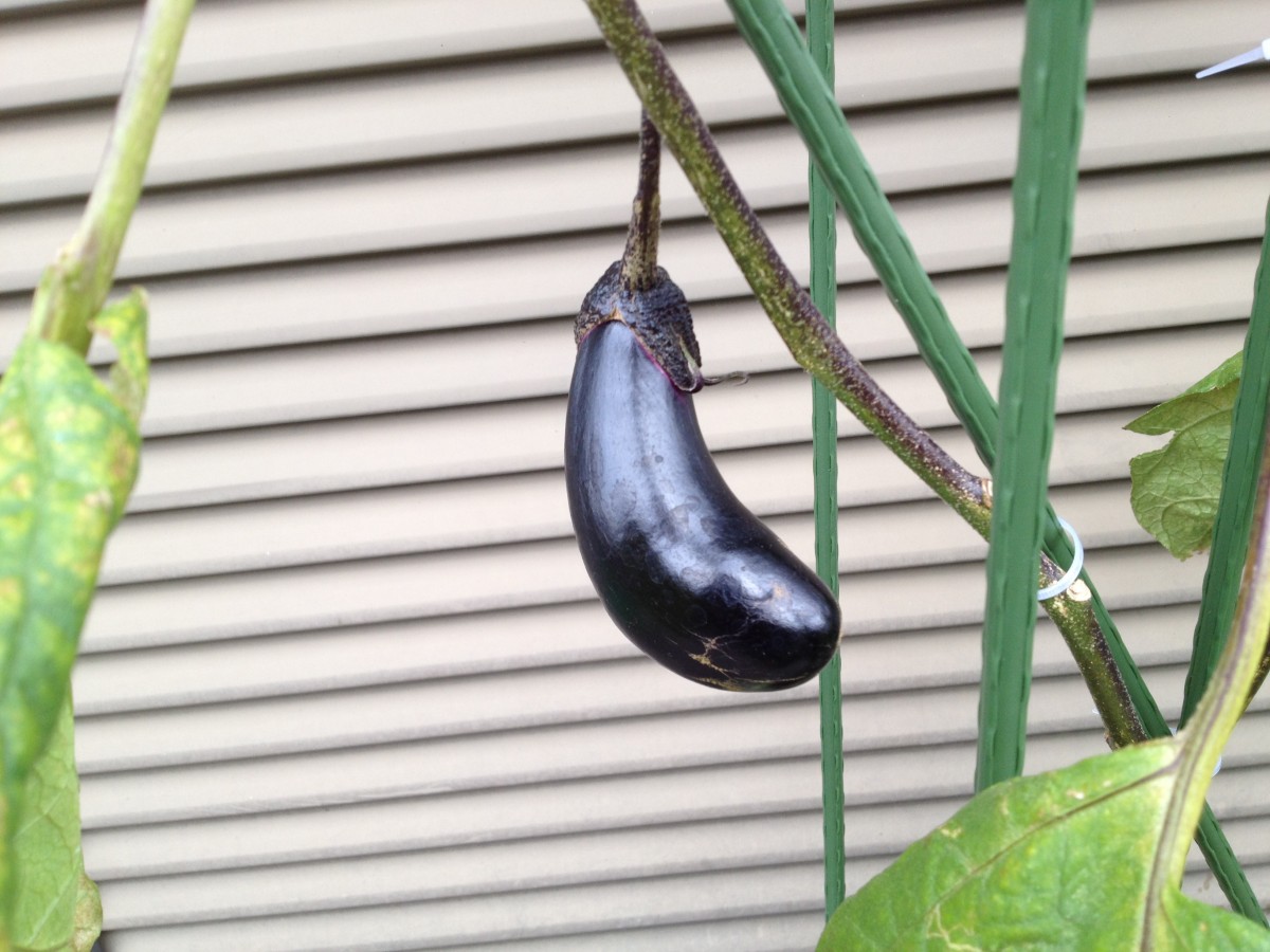 5つめ、6つめのナス。3日前とくらべると、しっかりサイズアップしていて色もついてきています。