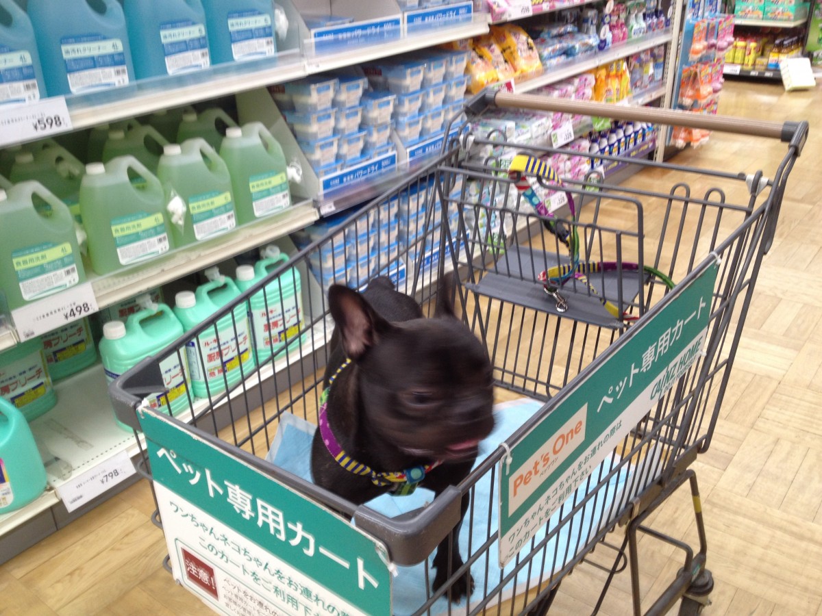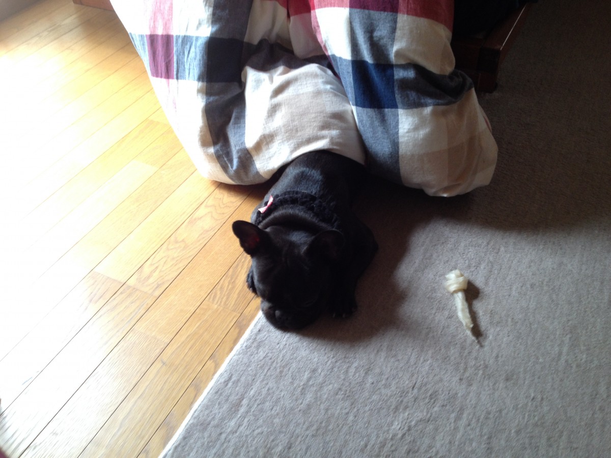 何かが掛かっていたいフレンチブルドッグのぶんた。